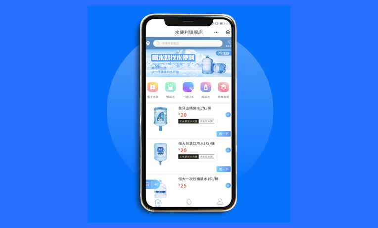 传统订水方式经常因电话占线 / 漏接丢失客户,而结合互联网可以通过微信公众号 / 小程序等多种线上方式订水,大大减少人员的话务量,店铺下单方便美观,线上订单实时查看。